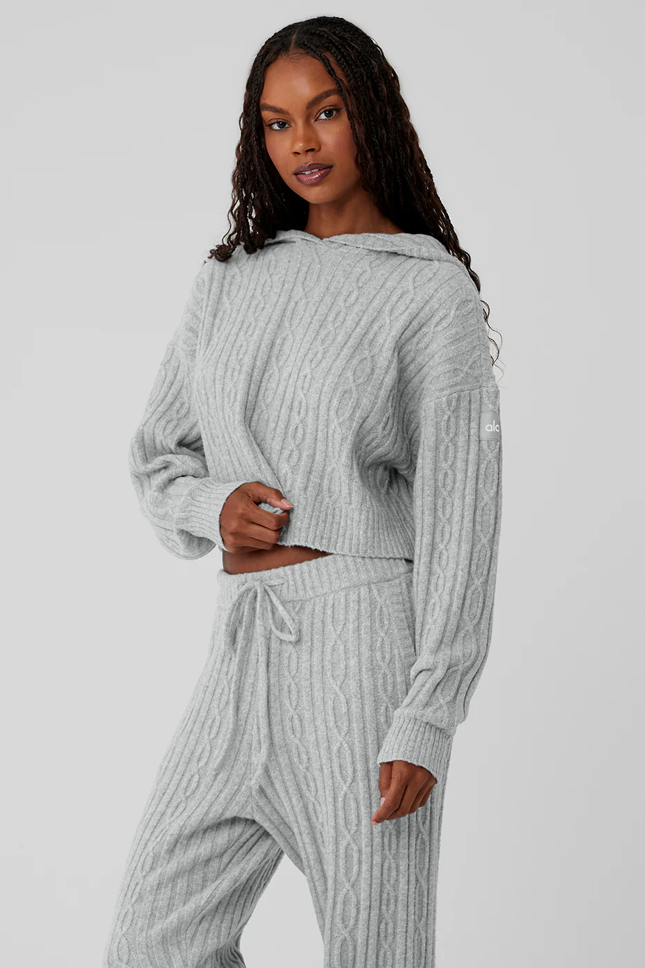 Alo Yoga Cable Knit Winter Bliss Hoodie – Athletic Heather Grey