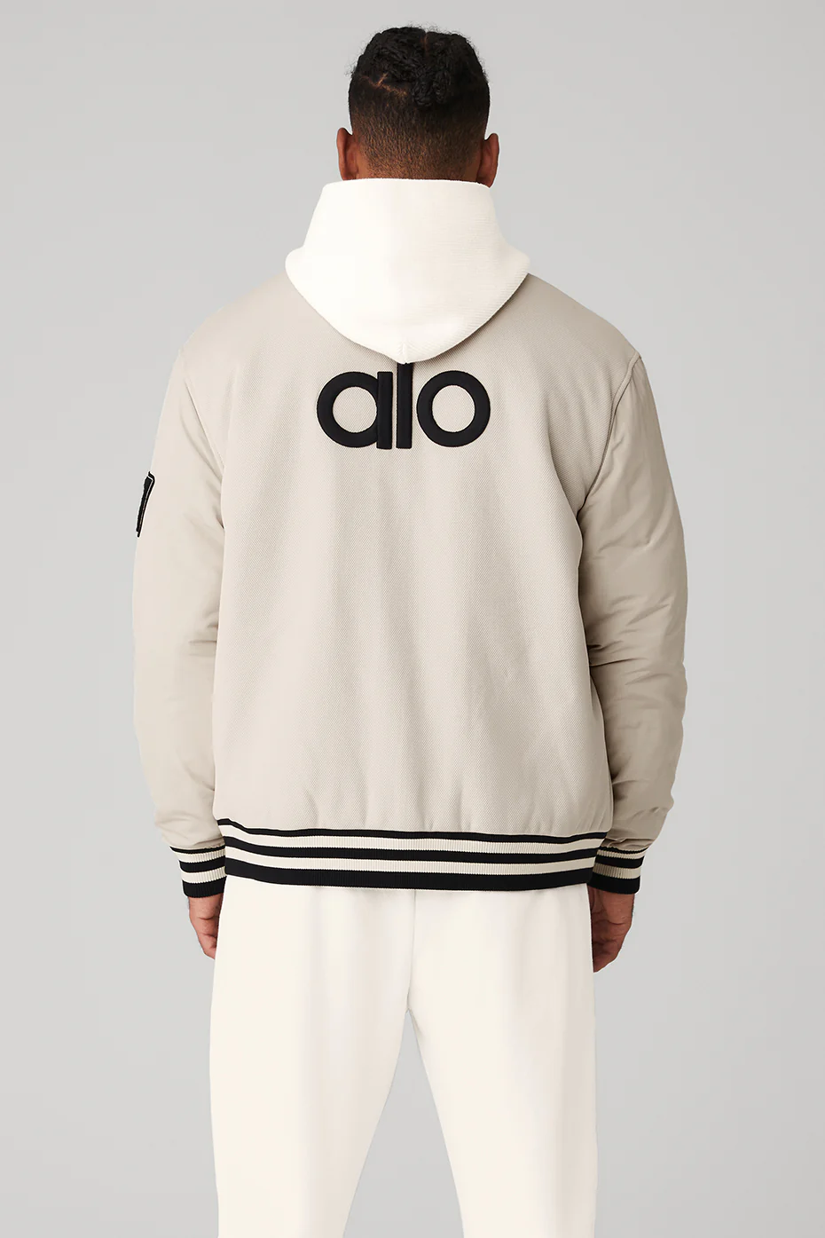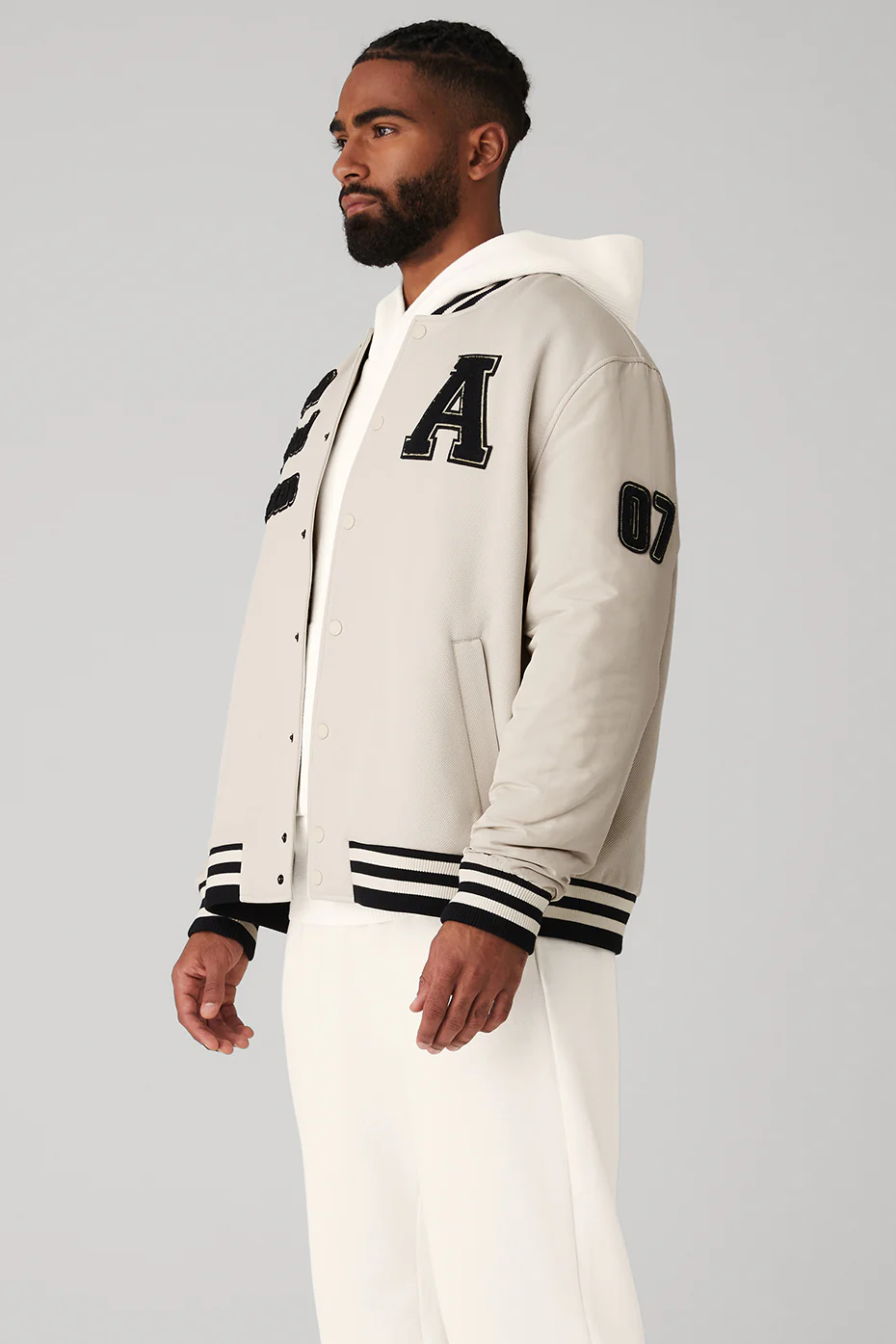 So epic, it stands in a class all its own — meet the G.O.A.T. Jacket. The “Greatest of all time” lives up to its name, thanks to an iconic letterman-style design covered in one-of-a-kind patches, with a textured, brushed fleece body and sleek, memory woven fabric for the sleeves and lining. Front slash pockets, ribbed cuffs & collar and a full zippered front complete the look.