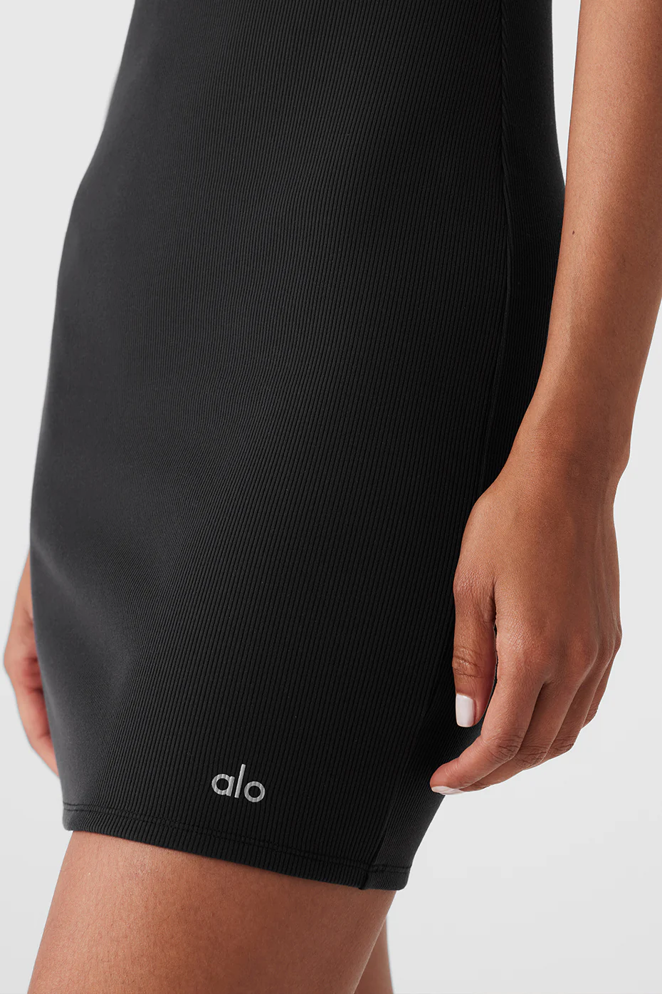 Alo Yoga Goddess Ribbed Spaghetti Strap Dress – Black