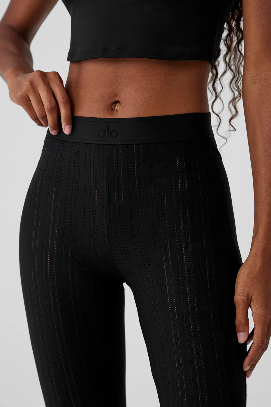 Done in a semi-sheer, drop-needle pointelle knit, these are soon to be your prettiest pair of leggings. This style features full-length legs, a body-hugging fit and a high-rise, boxer-style waistband with an Alo logo. Wear yours with tonal underwear (the coverage is up to you) then add a button-down, a sweater, or a cropped tee to complete the look.
