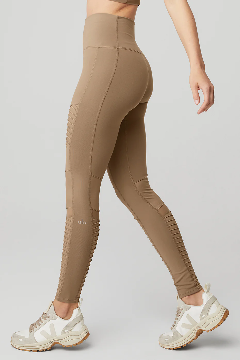 Alo Yoga High-Waist Moto Legging – Gravel/Gravel Glossy