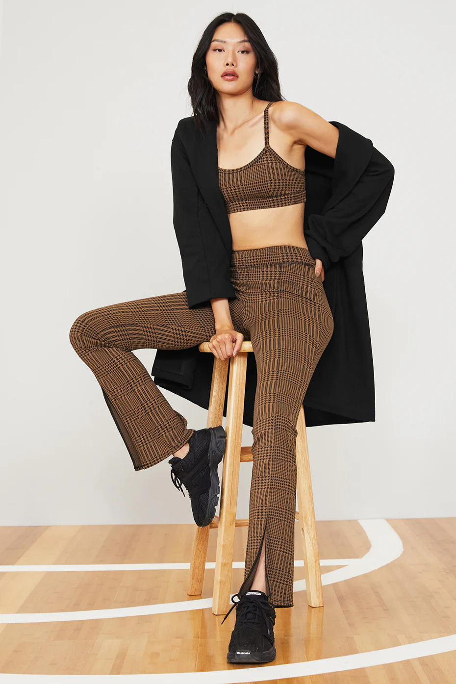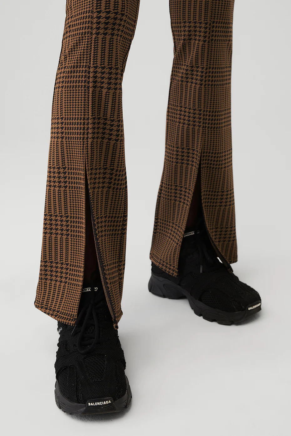 Alo Yoga Jacquard High-Waist Glenplaid Flutter Legging – Cinnamon Brown/Black