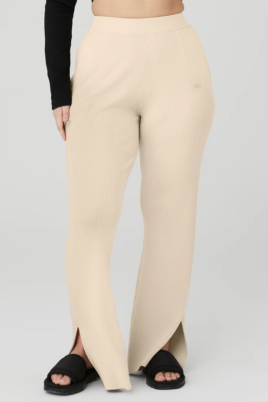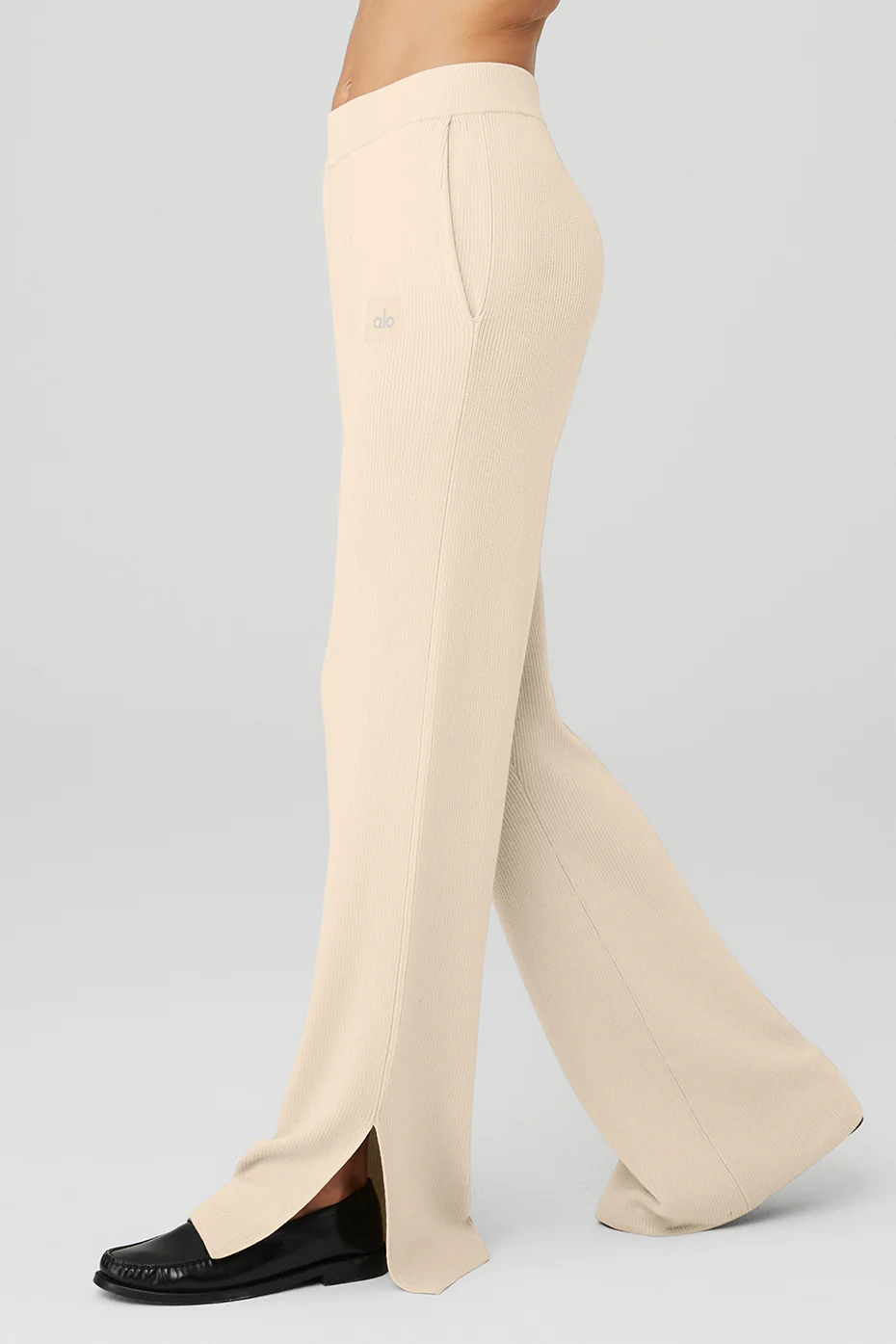 Alo Yoga Knit High-Waist Salana Wide Leg Pant – Macadamia