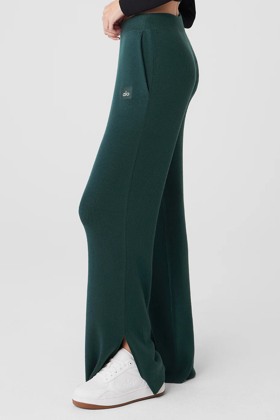 Alo Yoga Knit High-Waist Salana Wide Leg Pant – Midnight Green