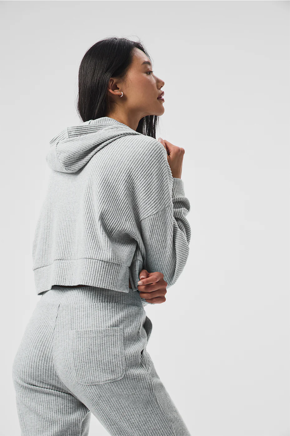 Stay seriously comfy from studio to street to lounge. The Muse Hoodie is made with a soft ribbed knit and has a relaxed, cropped silhouette and slits at sides. Pair it with the matching sweatpant to master off-duty.