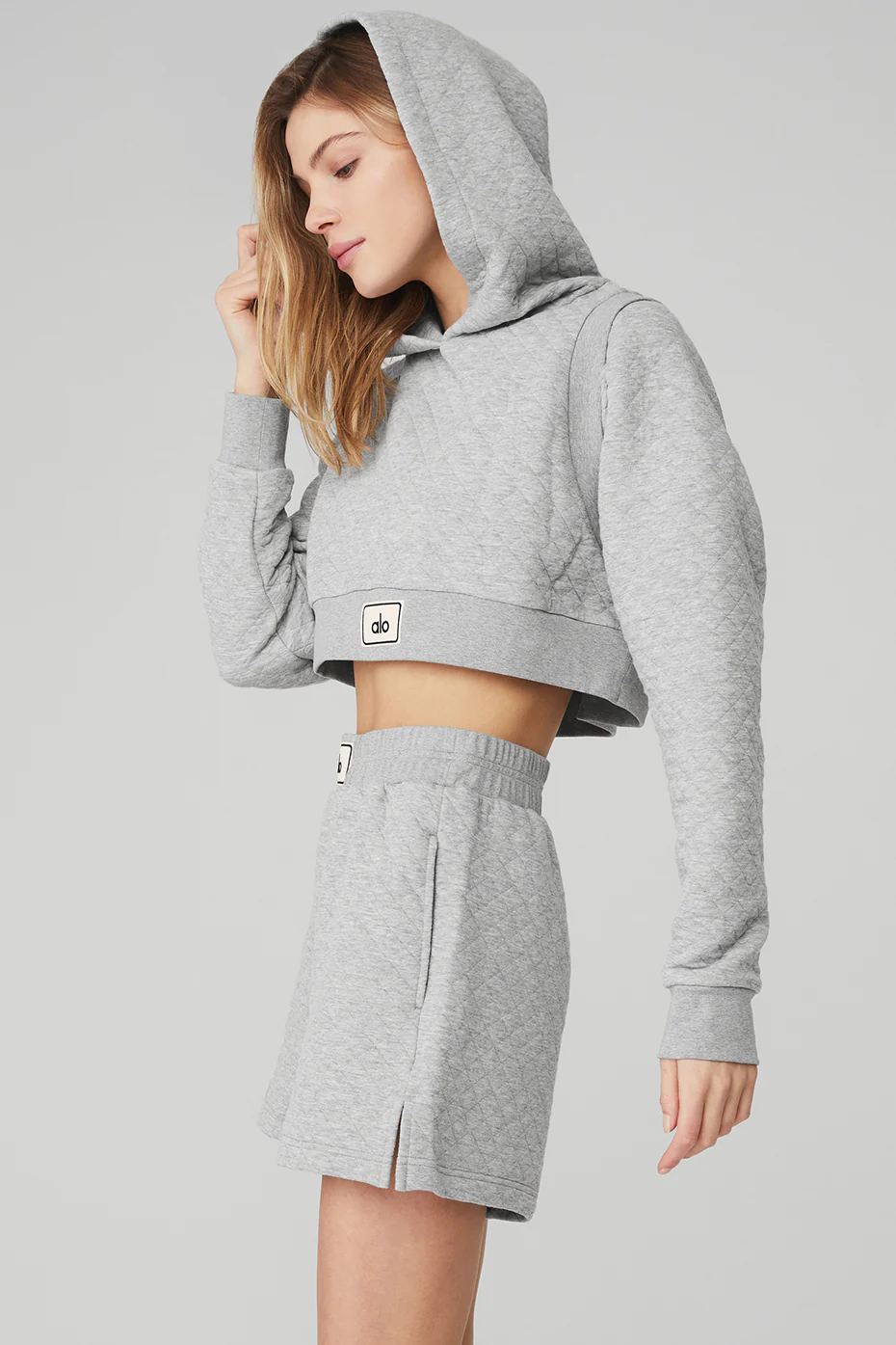 Alo Yoga Quilted Cropped Arena Hoodie – Athletic Heather Grey
