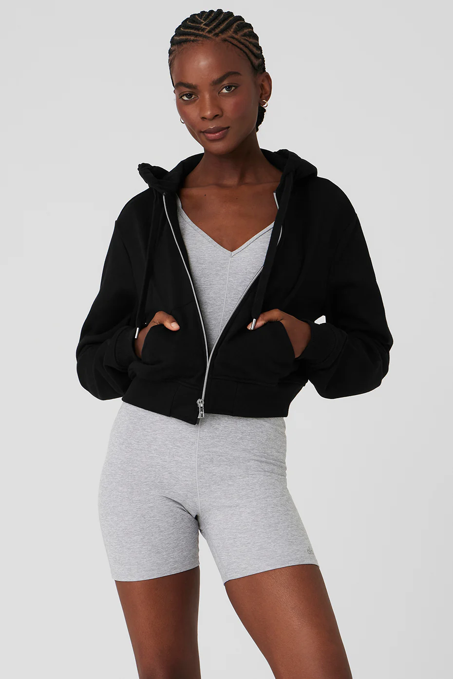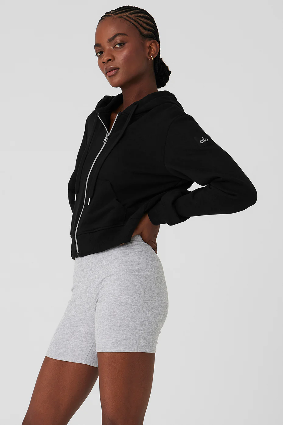 Alo Yoga Routine Cropped Zip Hoodie – Black