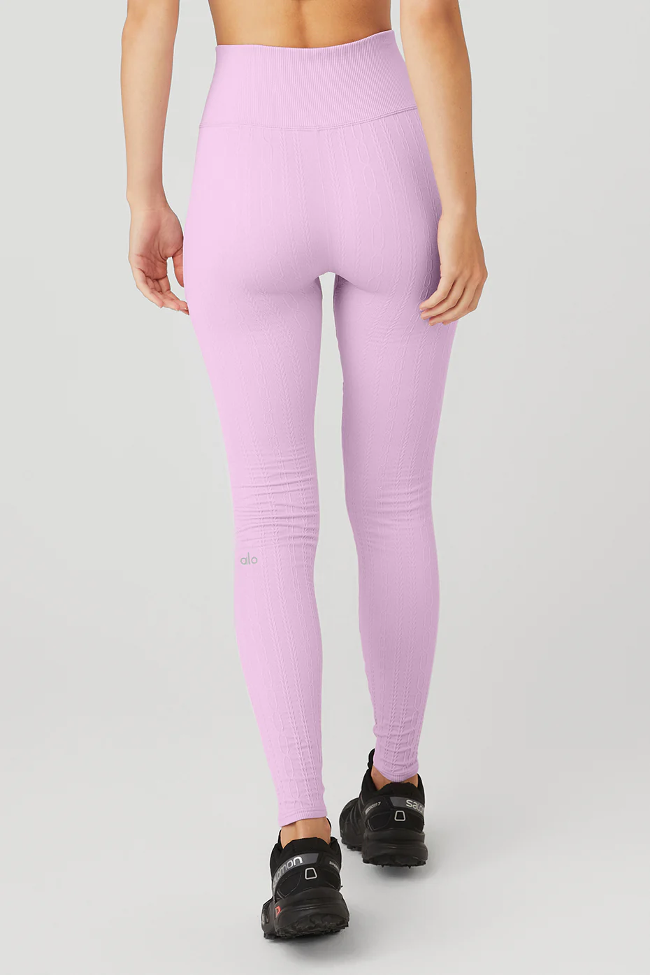 Alo Yoga Semi-Sheer Seamless Cable Knit High-Waist Legging – Sugarplum Pink