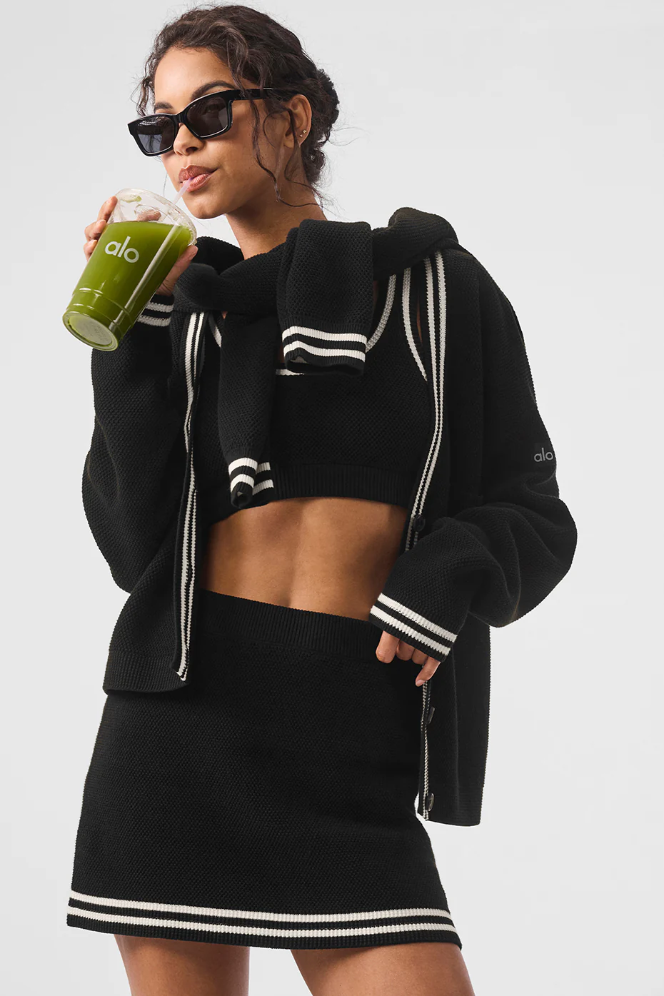 Alo Yoga Tennis Club Sweater Knit Skirt – Black/Ivory